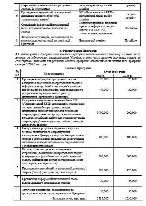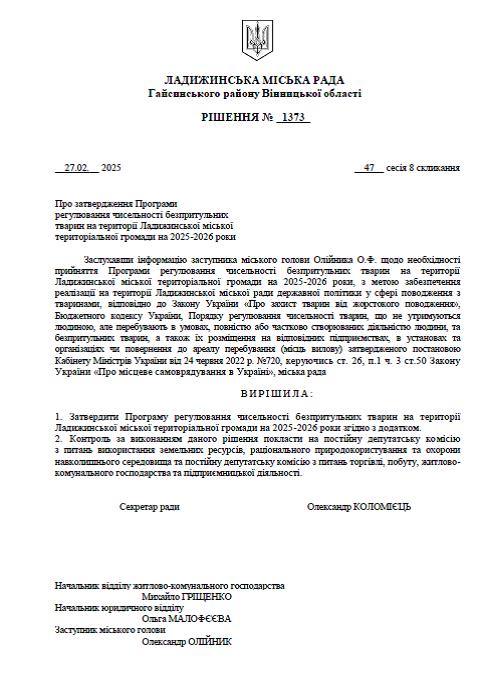 27 лютого 2025 року затвердили “Програму регулювання чисельності безпритульних тварин на території Ладижинської міської територіальної громади 2025-2026”. Документ мав стати фактично “дорожньою картою” для вирішення цього непростого питання.