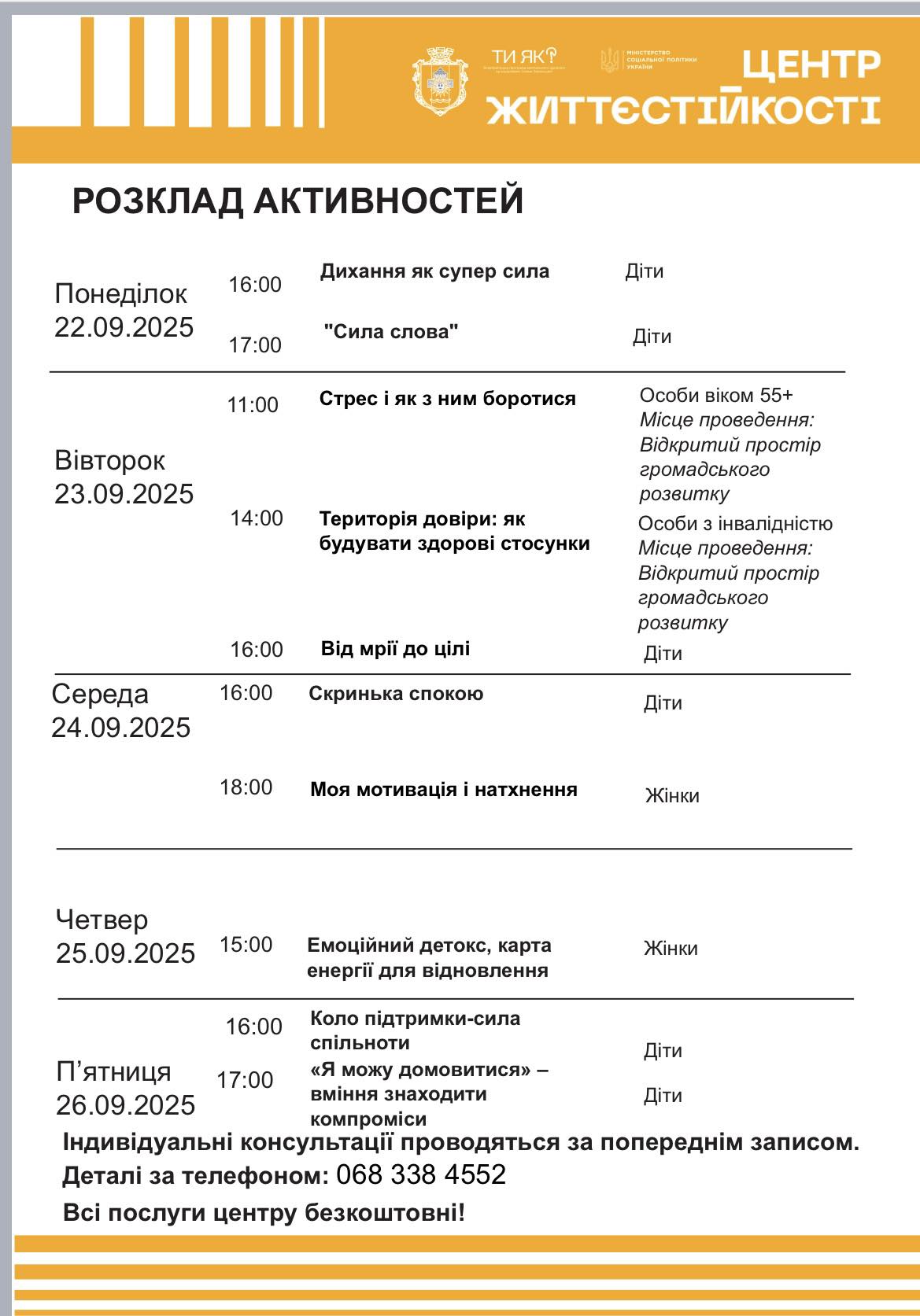 Цього тижня Центр життєстійкості підготував серію практичних зустрічей для всіх вікових груп.