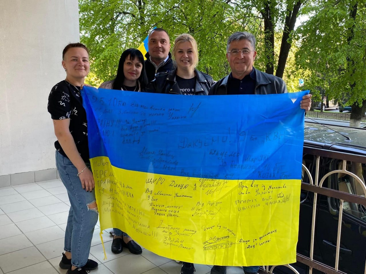 Тепер у її офісі — понад сто прапорів і шевронів від військових, медаль від Міноборони, листівка з підписом Валерія Залужного. Кожен прапор — не трофей, а історія життя.