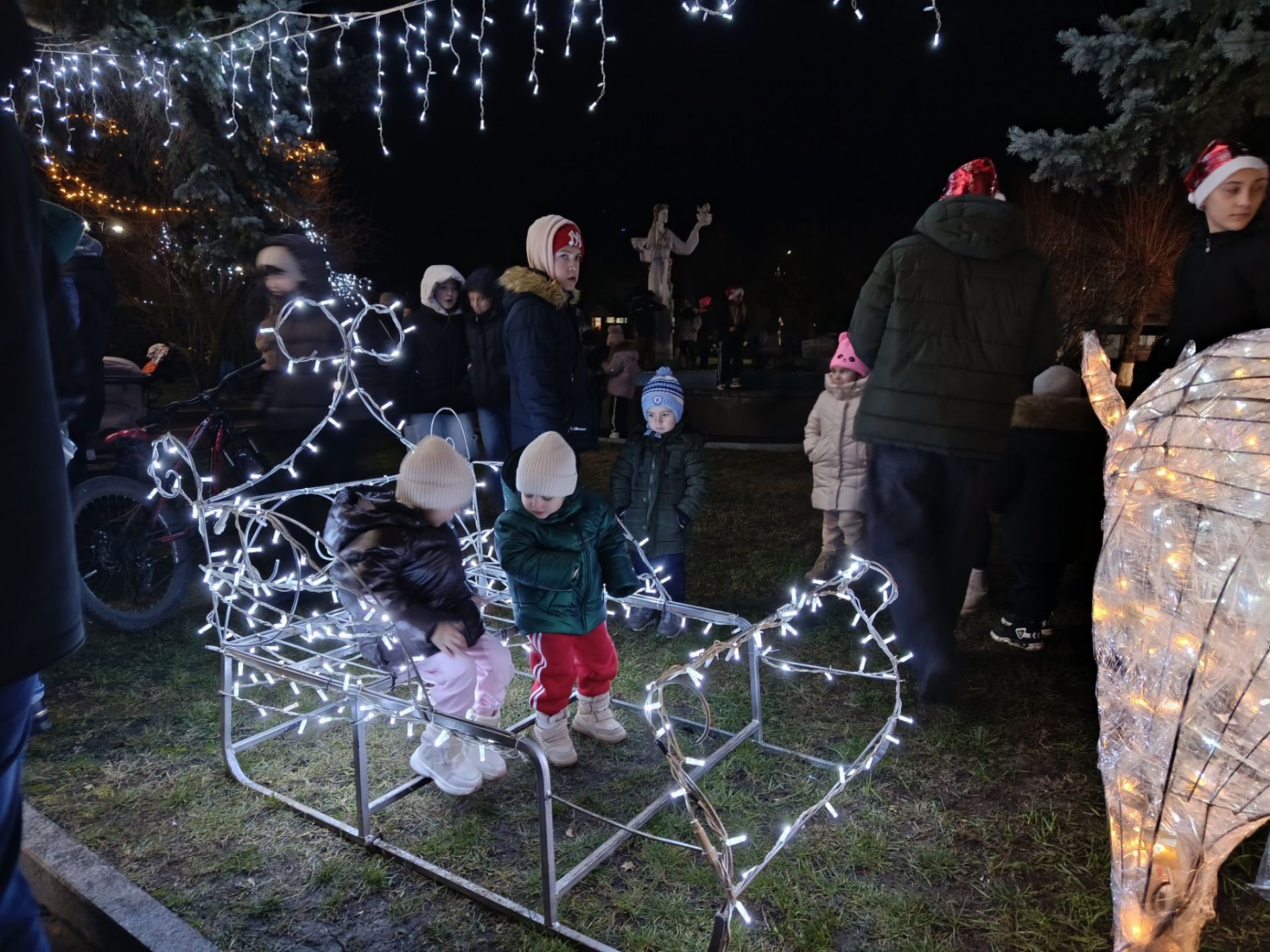 У сусідніх містах теж створили святкову атмосферу. У Хмільнику центральну штучну ялинку в міському парку прикрасили різнокольоровими іграшками та гірляндами, а на відкритті у День Святого Миколая зібралося чимало дітей із батьками.