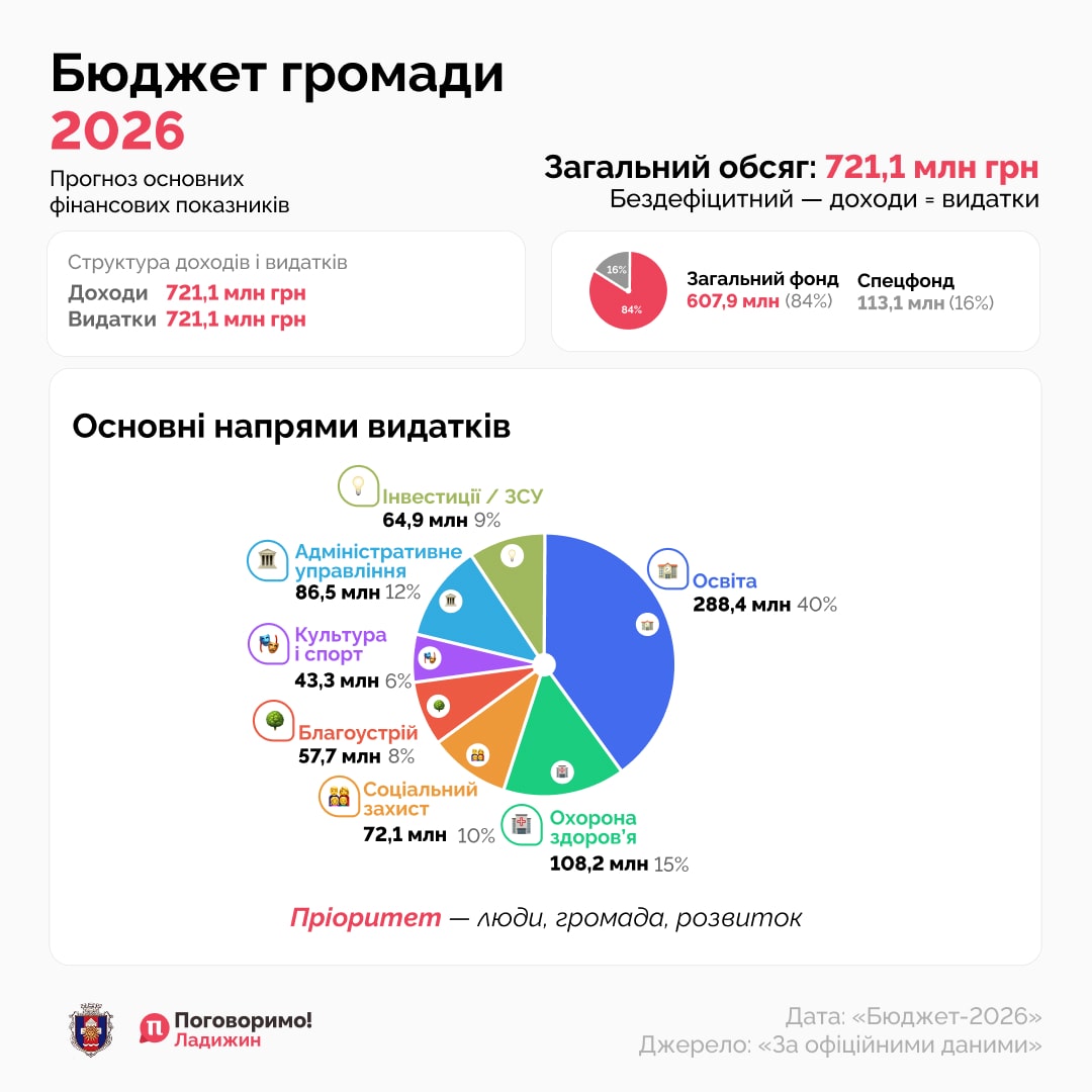 Ладижинська міська територіальна громада представила прогноз бюджету на 2026–2028 роки — документ середньострокового планування, який визначає ключові напрями соціально-економічного розвитку в умовах війни та післявоєнного відновлення.