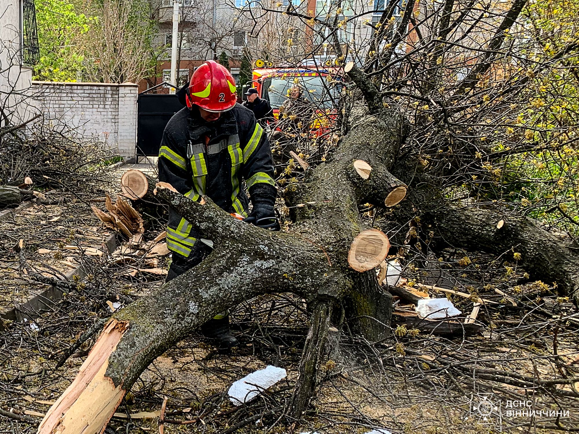 Стихія призвела і до травмування людей. У місті Козятин 24-річний чоловік отримав травми через падіння великої гілки. Бійці ДСНС надали допомогу в транспортуванні постраждалого до карети швидкої допомоги для подальшої госпіталізації.