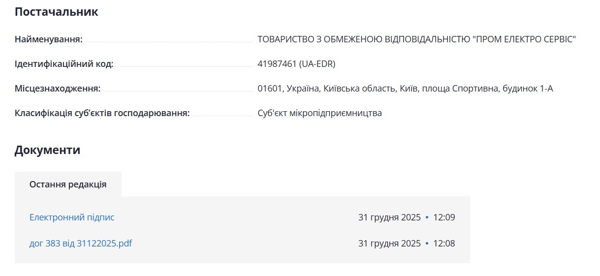 У початковому матеріалі зазначається, що відмова переможців від підписання договору є “нормальною, масовою практикою” саме для тендерів із закупівлі електроенергії. Учасники подаються на подібні закупівлі по всій Україні, а після перемоги оцінюють вигідність підписання угоди. У разі невигідності, компанія має право відмовитись від підписання договору.Інформація про ТОВ “Пром Електро Сервіс”