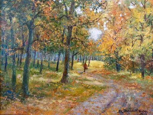 Він родом із Богданівки, села поруч із містом, і цей факт відчувається в усьому його живописі. У роботах Самошевського немає поспіху й надмірних ефектів. Його пейзажі не намагаються сподобатися, портрети не заграють із глядачем, а колір не кричить. Тут усе на своїх місцях — так, як буває лише тоді, коли художник не змагається з реальністю, а уважно її слухає.