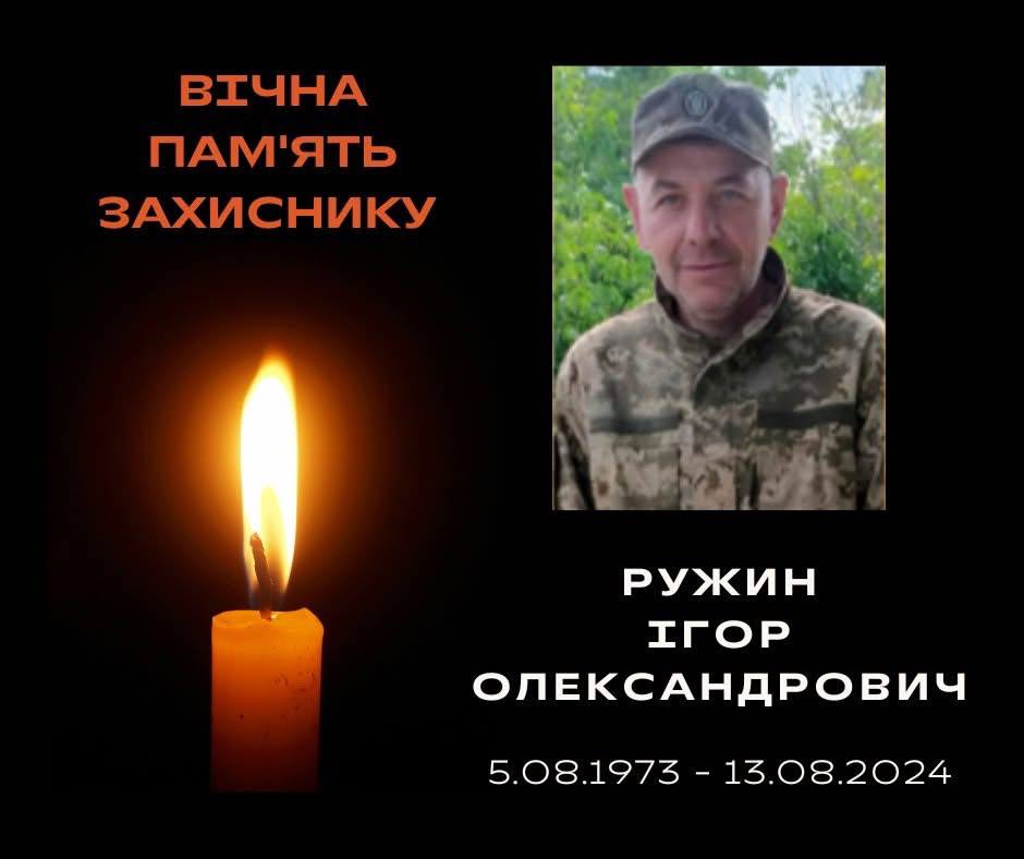 Солдат Збройних Сил України Ігор Олександрович Ружин загинув 13 серпня 2024 року.