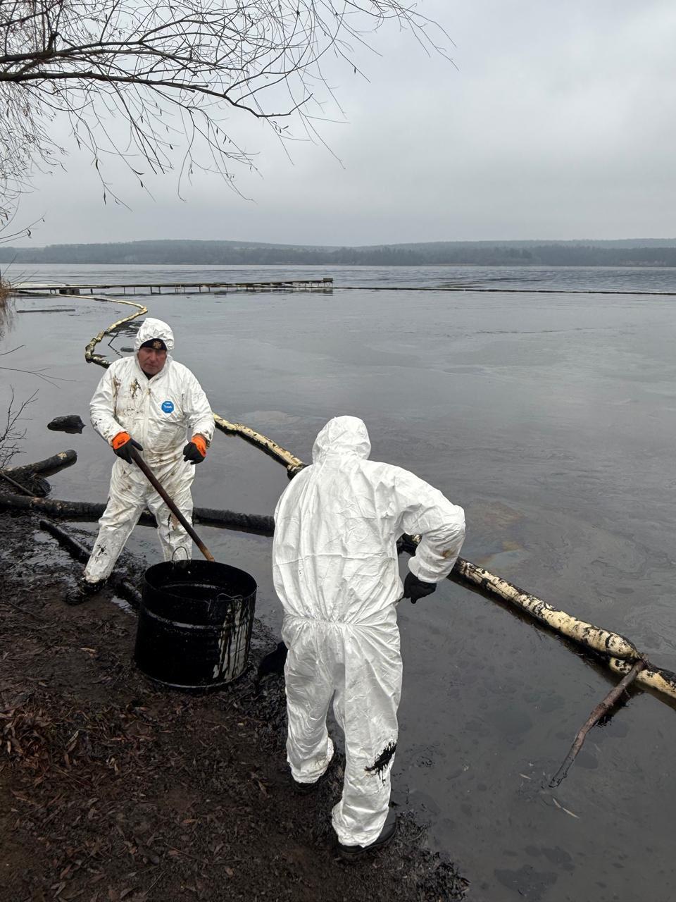 Очищення триває, служби працюють над тим, щоб мінімізувати наслідки забруднення та запобігти поширенню мазуту річкою.