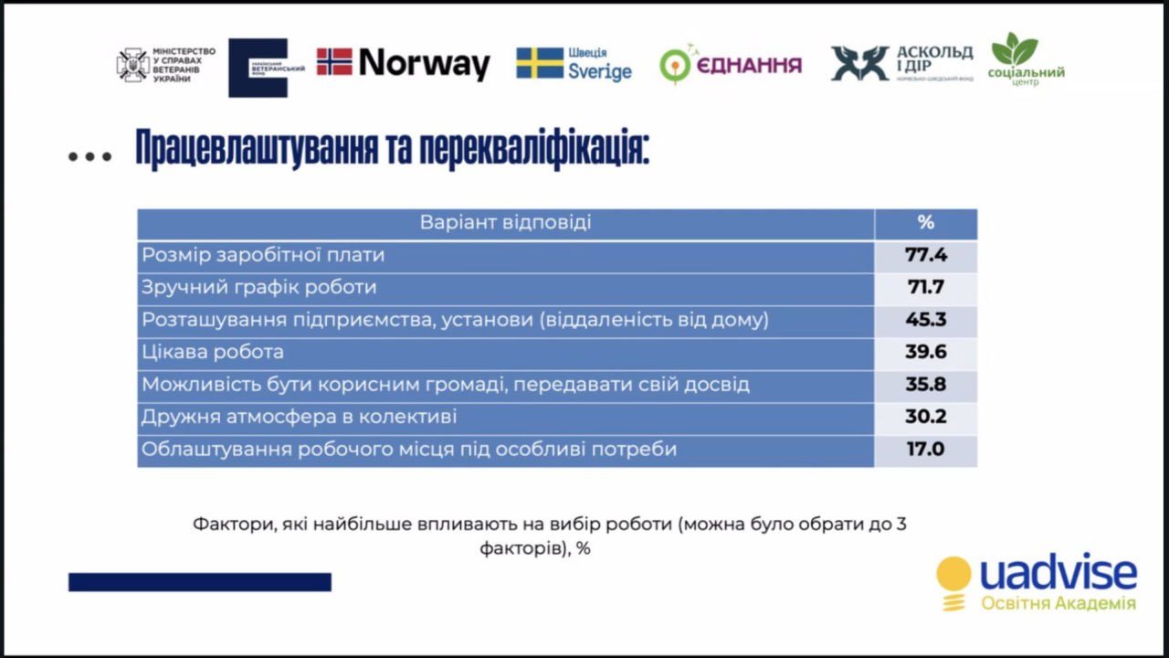 У питанні працевлаштування ветерани демонструють чіткі пріоритети: