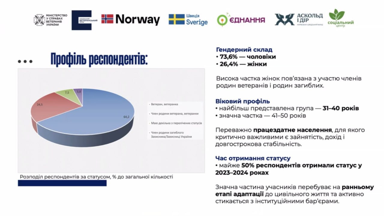 Портрет респондентів чітко вказує: значна частина ветеранської спільноти лише нещодавно повернулася до цивільного життя.